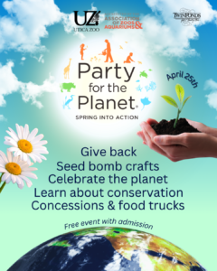 Party for the Planet connects families to nature through volunteer opportunities and events that improve our planet. Join us and other AZA-accredited zoos, aquariums, science centers, and nature centers as we work to improve the condition of our planet, Earth. To celebrate, we’ll have conservation organizations available to learn from, free giveaways, food trucks, volunteer opportunities, earth-day related crafts, and more! No registration is required and this event is free with regular zoo admission.
